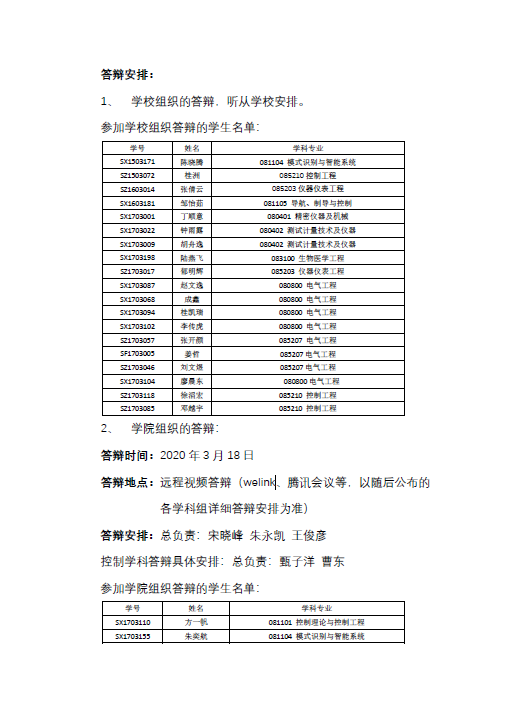 【研究生学位】小蓝视频 关于2020届硕士研究生答辩工作安排及公布参加学校、学院组织答辩学生名单的通知