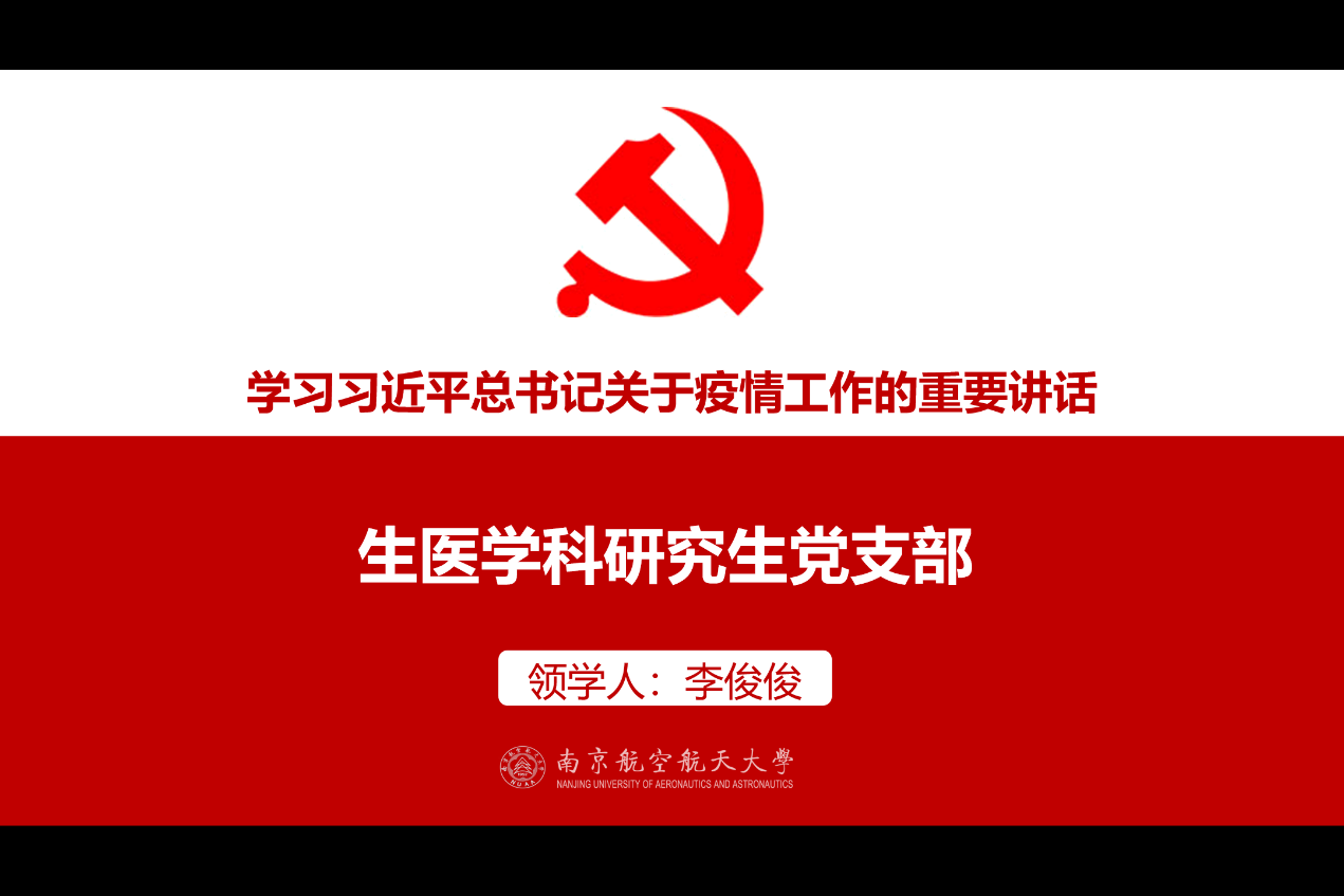 为贯彻中央《关于加强党的领导、为打赢疫情防控阻击战提供坚强政治保证的通知》和《新时代爱国主义教育实施纲要》精神,发挥学生党员先锋模范作用,认真学习新冠肺炎疫情防控“大课”,涵育新时代爱国主义精神、坚定爱国力行使命责任,2020年4月6日,小蓝视频 生医学科研究生党支部开展了线上“微党课”。