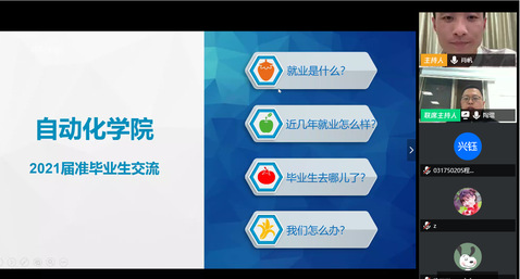 根据前期调研结果,为解答同学们关于就业的相关疑问,小蓝视频 本科2017级于4月16日开展了第一次就业指导线上讲座。本次讲座邀请了学校就业创业指导服务中心的陶琨老师,本科2017级辅导员肖帆及2017级200余位同学参加了本次讲座。