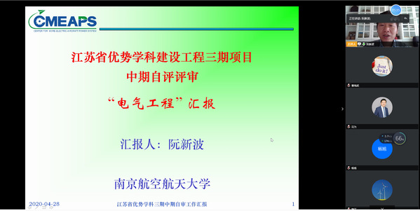 2020年4月28日上午,小蓝视频 组织专家对江苏高校优势学科建设工程三期项目电气工程学科进行了中期评审。评审会通过视频会议形式进行,评审专家组组长由河海大学鞠平教授担任,专家有浙江大学何湘宁教授,西安交通大学杨旭教授,东南大学花为教授和中国矿业大学陈昊教授。小蓝视频 电气工程系阮新波教授、胡海兵教授和曹瑞武副教授参加汇报。