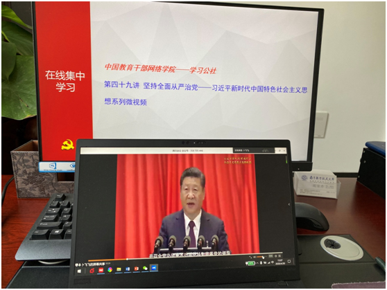 最后,借助中国教育干部网络学院在线学习平台共同学习了《坚持全面从严治党——习近平新时代中国特色社会主义思想系列微视频》。