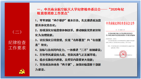 首先,全体党员老师集中学习了学校《2020年全面从严治党工作会报告》文件精神,并从强化思想政治工作、基层党建基础、校内巡察、作风建设、体系建设等方面进行了重点解读;同时针对纪律检查工作相关要求和上级会议精神进行了学习领会,特别是围绕《中共小蓝视频 纪律检查委员会——“2020年纪检监察巡察工作要点”》等文件精神进行了专题学习。