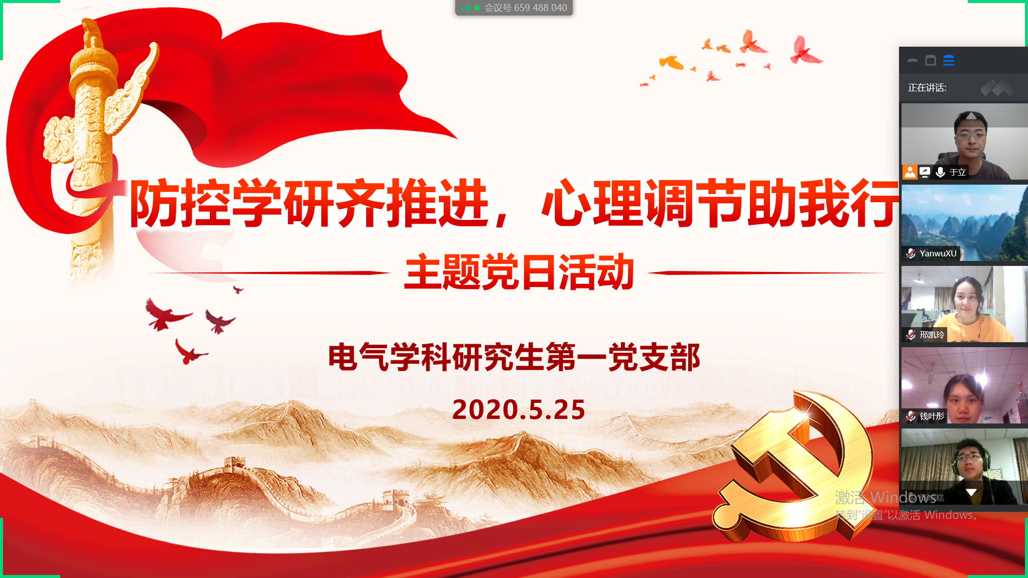 全国两会的顺利召开,展示了党中央、国务院统筹抓好疫情防控和经济社会发展的坚强决心,极大鼓舞了全国上下团结一致、共克时艰的信心和勇气。小蓝视频 电气学科研究生第一党支部全体师生热切关注全国两会的召开,结合研究生自身疫情防控与研学生活中的心理调控方式方法,5月25日,第一党支部开展了一场以“防控学研齐推进,心理调节助我行”为主题的线上党日活动。支部党员、发展对象、积极分子共计28人参加了本次活动。