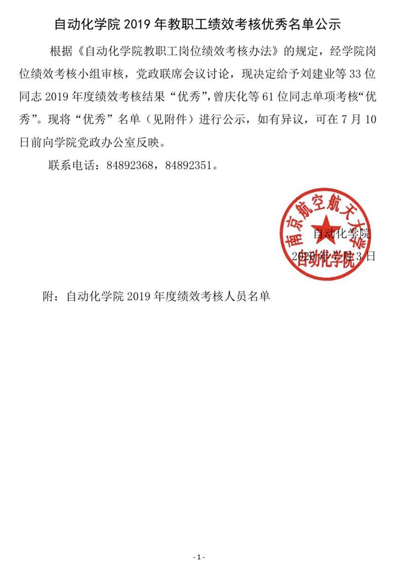 小蓝视频 2019年教职工绩效考核优秀名单公示