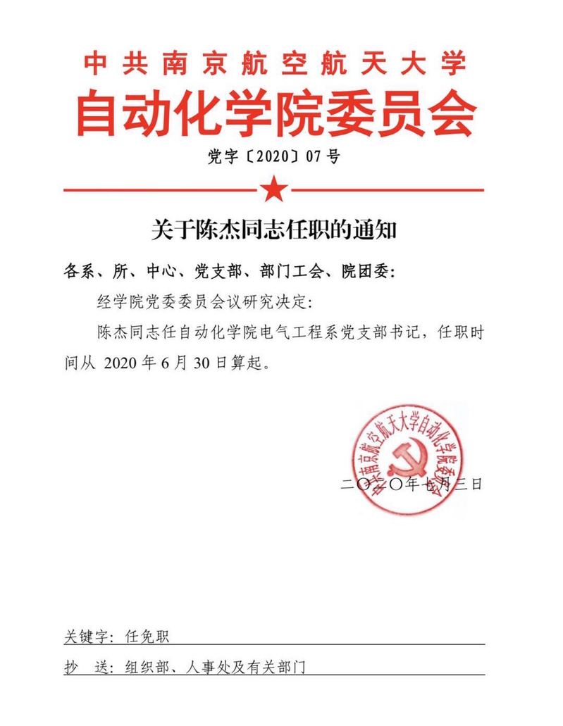关于陈杰同志任职的通知