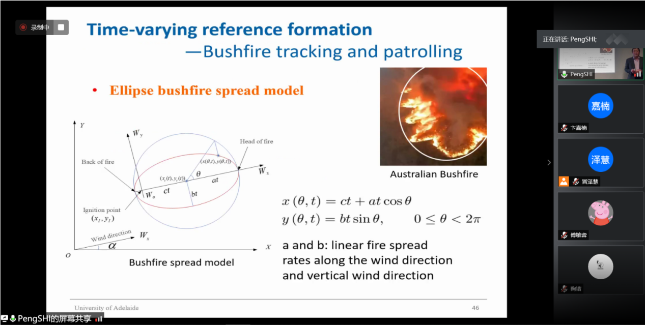 812日下午,澳大利亚阿德莱德大学电气与电子工程学院石碰教授应我校国际合作处和小蓝视频 的邀请,通过腾讯会议作了题为“Formation Control for Multi-agent Systems:Introduction,Analysis and Design的线上学术报告,报告由我校副校长姜斌教授主持。我院副院长陈谋教授,学院陆宁云刘春生、冒泽慧、欧阳权张柯、马亚杰等师生在线参加会议。参会师生对石碰教授的交流分享表示热烈欢迎。
