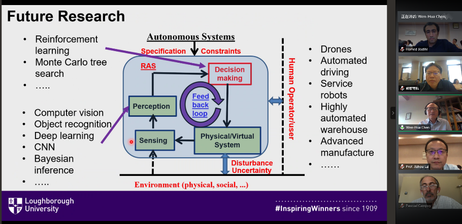915日的研讨会分别由小蓝视频 Hamed Badihi、熊智、曾庆化和赖际舟四位教授主持。英国拉夫堡大学的陈文华教授、西班牙马德里理工大学的Pascual Campoy教授、香港理工大学的许立达教授、千寻位置网络有限公司首席科学家的冯绍军教授、以及英国帝国理工学院的Washington Ochieng教授等5位国内外著名学者作了大会报告,内容涉及无人系统控制、导航系统完好性、车载机载导航控制技术及人工智能等相关的前沿研究领域。