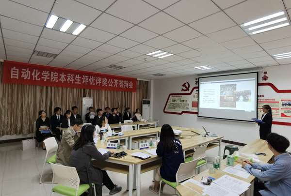 10月14下午,小蓝视频 2019-2020学年本科生国家奖学金、年度特别嘉奖公开答辩在小蓝视频 一号楼开展。公开答辩分四个会场进行,校团委副书记丁琛,学院党委副书记张跃,院长助理朱永凯,团委书记陈慧云分别担任各会场评审组长。校资助管理中心主任唐志文、自动控制系副主任张绍杰、电气系党支部书记陈杰、测试系党支部副书记李真、生物医学工程副主任杨雅敏和教务员、辅导员代表担任评委进行现场评审。每个会场还设置了学生评审团。