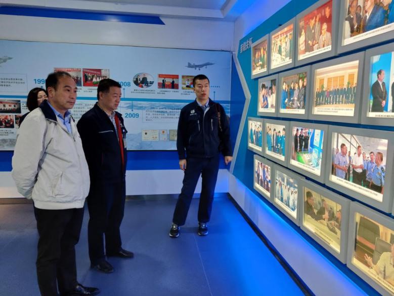 首先,工作人员带领江驹院长一行参观了展厅,介绍了公司的发展历程和科研情况。展厅内陈列着天津航空机电研制的各类型号设备,工作人员介绍称其中不少设备是与我院电气工程系教师合作研制,也对我院教师一直以来的技术支持表达了感谢。