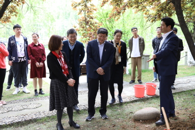 来访期间,姜杰院士在小蓝视频 党委书记郑永安、副校长姜斌、校长助理吴启晖、校科协秘书长刘双丽、自动化院长江驹及学生代表陪同下,前往西区院士林,亲手栽种了一棵 “紫叶李”,寓意“桃李满天下”,希望能够激励更多的青年学子,如同后浪一般奔涌前进,不断向前,传承航天精神,为祖国的航天事业贡献自己的力量。