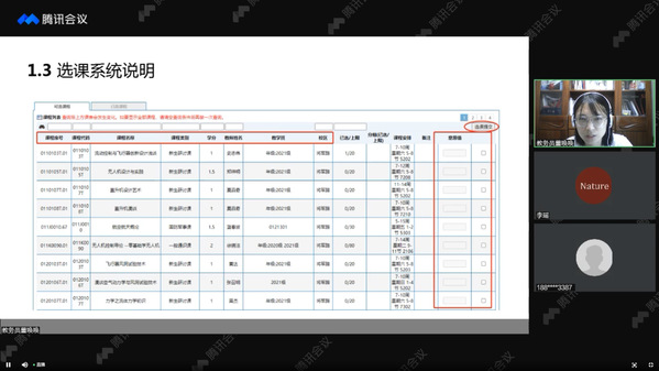 董唤唤还就培养方案进行了详细的解读,指导新生选课系统的具体操作方法和意愿值选课等教务方面的注意事项。