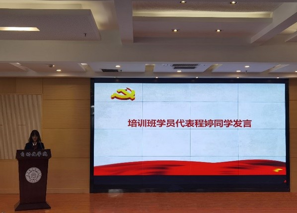 在庄严的国歌声中,开班典礼拉开了帷幕,学院2019级电气工程及其自动化专业本科生程婷同学作为学员代表进行发言。她代表全体学员做出了郑重承诺:会认真学习党的理论知识,提高自己的思想素质和理论水平,积极向党组织靠拢。以党员的标准严格要求自己,用实际行动服务群众,为实现祖国的繁荣富强和中华民族的伟大复兴而不懈努力!
