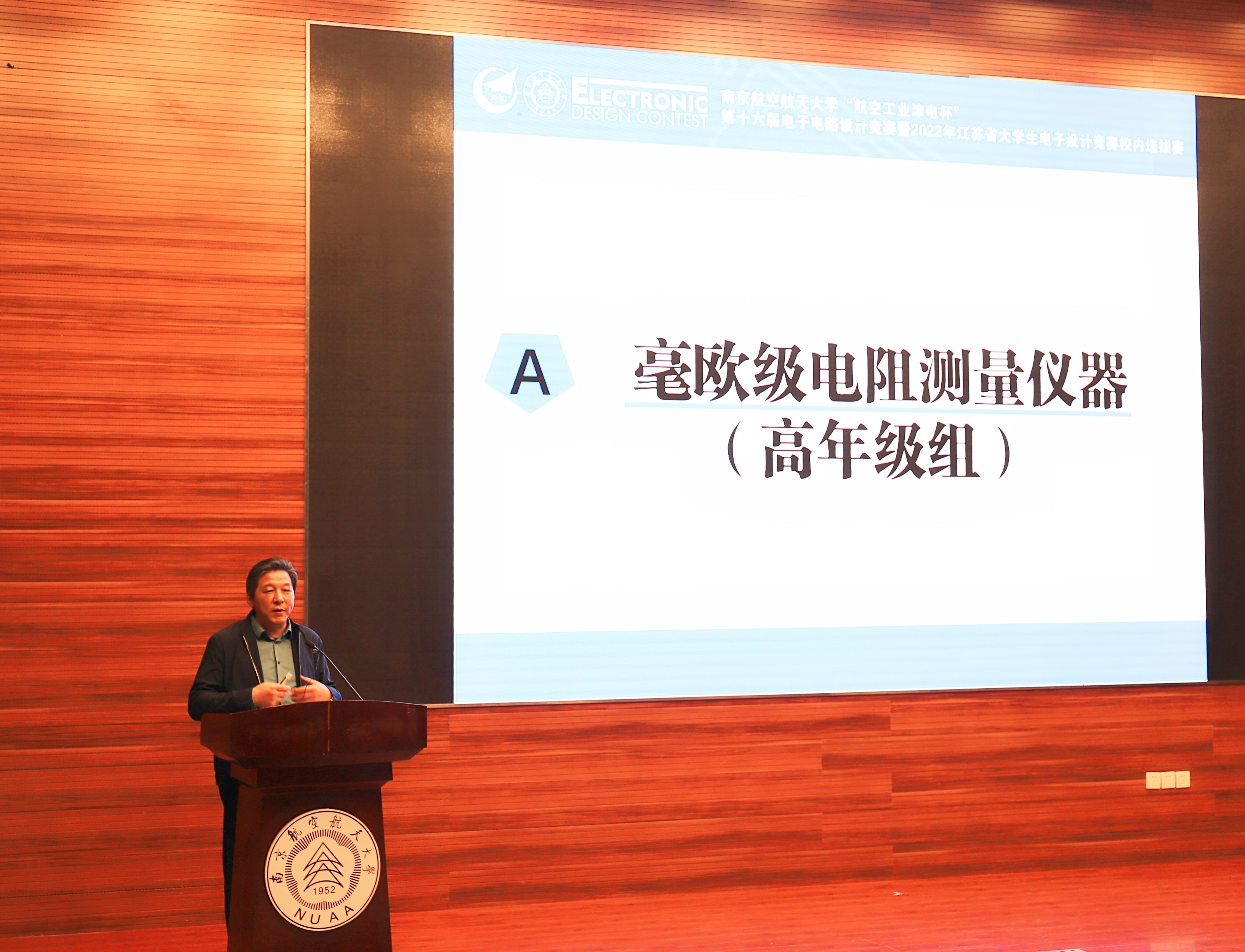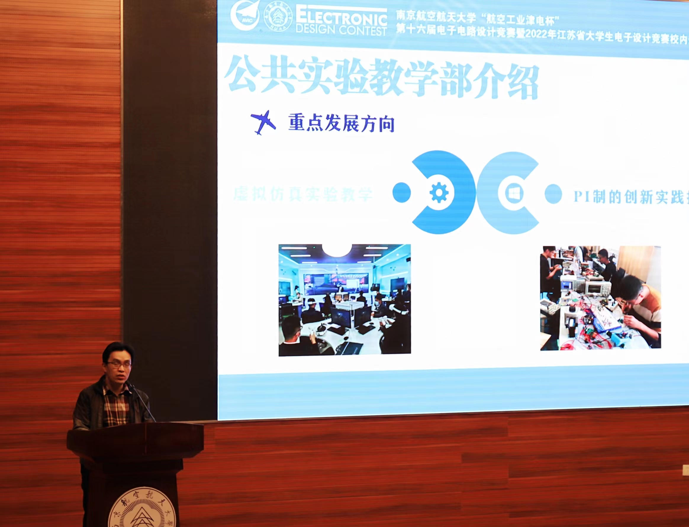 2021年11月5日晚,由小蓝视频 承办的“航空工业津电杯”第十六届电子电路设计竞赛开幕式暨试题发布会在将军路校区1号楼4楼报告厅举行。中国人民解放军陆军工程大学教授潘克修、南航教务处副处长朱建军、南航公共实验教学部电工电子实验中心主任洪峰、小蓝视频 副院长王晓琳、院党委副书记丁琛、院团委书记陈慧云、研究生辅导员肖帆、本科生辅导员王克杰以及各个参赛队伍的代表共同参加了此次发布会。