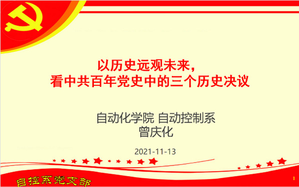 支部书记曾庆化同志结合中国百年党史中的三个决议报告,带领支部同志学习了我党在1945年、1981年和2021年三个特殊年代背景及其决议的历史意义。与会党员围绕学习习近平总书记在辛亥革命110周年大会上的重要讲话精神,交流了学习体会和心得。