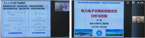 南瑞集团薛禹胜院士,国家电网公司陈维江院士,清华大学耿华教授,国家杰出青年科学基金获得者、重庆大学杜雄教授,国家杰出青年科学基金获得者、东南大学花为教授,国电南瑞稳定公司副总经理李威博士和阳光电源有限公司张巍博士应邀作大会报告,内容涉及新型电力系统与故障防御、低频交流输电技术、新能源集群控制及稳定性、磁通切换电机、新能源人工智能等。重点实验室也特意安排4位青年学者作学术报告,内容涉及磁集成技术、等离子技术和特种电机与控制技术等。阮新波教授和小蓝视频 副院长张卓然教授分别主持了上午和下午的大会报告。