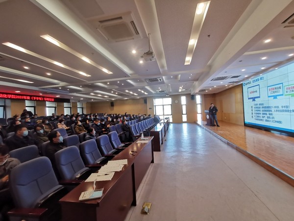 12月1日,小蓝视频 2021年下半年导师培训会在学院1号楼511报告厅举行。本次培训的主题是“安全护航,提高研究生招生质量,助力学校‘双一流’建设”,学院邀请学校国有资产管理处副处长阎志军、研究生院招生办公室副主任张正杰作培训报告,学院全体导师、教学办老师参加了培训会。会议由副院长宋晓峰主持。