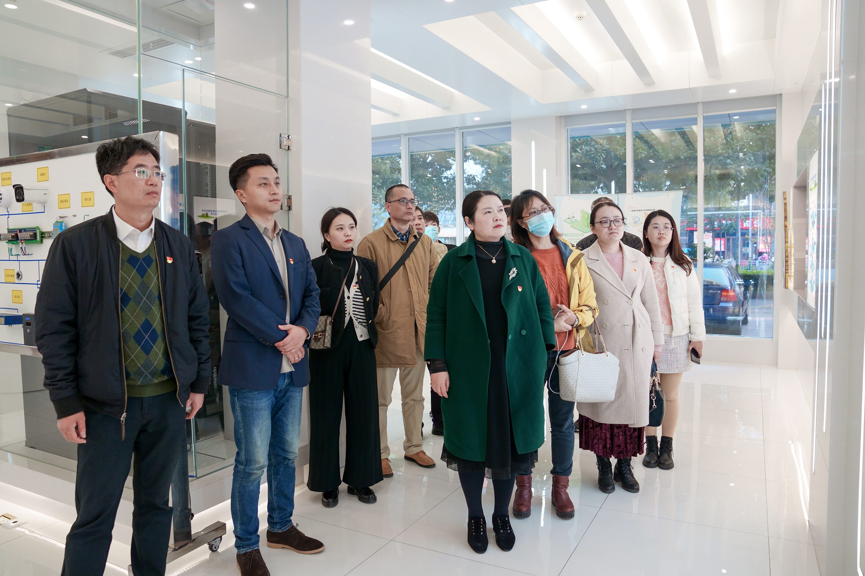 随后,党员们前往句容供电公司综合能源服务中心与电力调度控制中心开展工作调研。综合能源服务中心可针对各类电力用户不同用电需求“量身定制”综合能源服务,涉及用户变(配)电房设备代运维、合同能源管理、用户端电力故障抢修、能效分析诊断、电能替代改造、用户侧储能等诸多业务。电力调度控制中心则是句容地区电网的心脏与大脑,承担地区电网的调度运行、变电设备运行集中监控、方式计划、继电保护、自动化等各专业管理职责。通过技术人员的讲解,大家对电网运行的全过程有了一定的了解,也对校园节能管理的发展方向及实现途径有了更深的理解。
