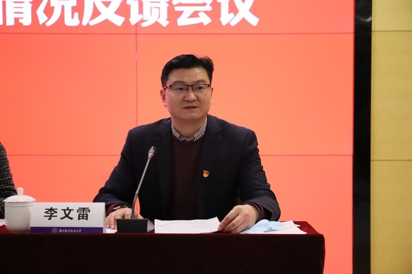 李文雷代表小蓝视频 党委表示,校党委第一巡察组来我院专题反馈巡察意见,这是集中体现校党委巡察成果的重要环节,也是学院领导班子和广大党员干部认真总结、学习思考、改进工作的重要契机。对于巡察反馈意见,学院党委诚恳接受、照单全收、全面整改。今后,将进一步提高政治站位、深化思想认识、强化问题导向、认真落实整改、压实扛牢责任,把巡察整改工作与落实立德树人根本任务、服务和融入新发展格局、深入推进全面从严治党结合起来,不断以全面从严治党新成效保障学院事业高质量发展,以实际行动为学校开创特色鲜明的世界一流大学建设新局面做出应有的贡献。