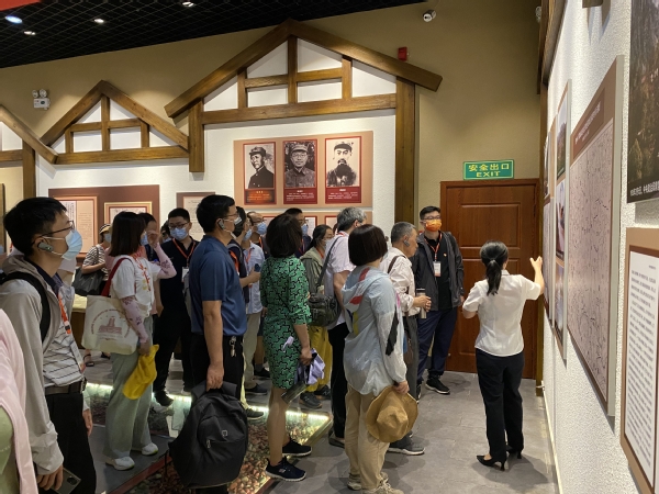 2022年7月7日,南航小蓝视频 “喜迎二十大,奋进新征程”遵义精神专题培训班一行四十余人前往贵州省仁怀市茅台镇三渡渡口陈列馆参观学习。陈列馆建筑面积1900平方米,展陈面积1100平方米。主要讲述的是红军一渡到四渡的过程,其中“三渡赤水”是至关重要的转折点,当年毛泽东、朱德、刘伯承等首长也就是从此渡河,茅台作为三渡之具有着十分重要的意义。陈列馆综合运用实物展陈以及声光电等技术,生动再现80年前红军四渡赤水波澜壮阔的历史,重温茅台镇与中国革命历史红色情缘,展示中国工农红军在血与火中建立的不朽功勋。