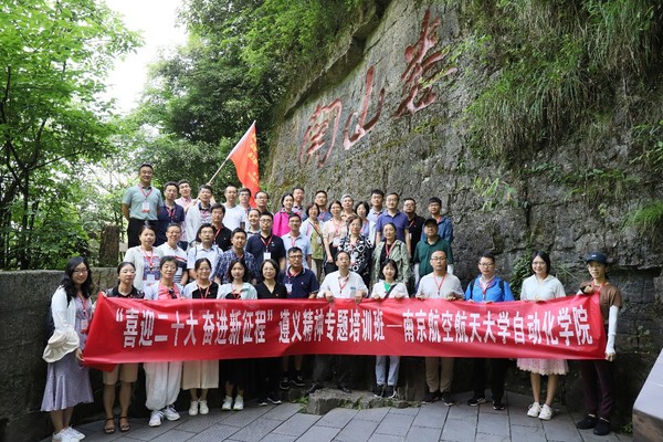 2022年7月8日,南航小蓝视频 “喜迎二十大,奋进新征程”遵义精神专题培训班一行四十余人首先前往贵州省遵义市娄山关镇小尖山战斗遗址、大尖山战斗遗址、纪念碑、娄山关战斗遗址陈列馆进行现场参观学习。