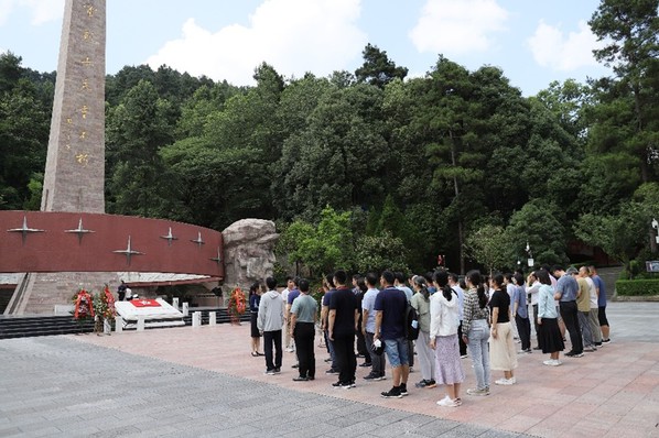 庄严肃穆的烈士陵园内,红军战士的雕像被苍松翠柏环绕。学员们沉浸于此,深刻缅怀在长征中光荣牺牲的红军烈士,心里都感慨万分,中国的胜利是来之不易的,是用千千万万的革命烈士鲜血换来的,这是中国永远的历史,中国的革命精神永放光芒。