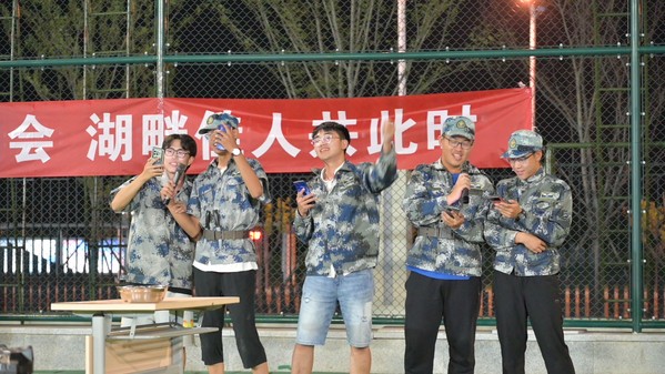 中秋之夜,星月皎洁,联欢晚会上同学们载歌载舞,在为期十四天的军训生活中,他们用歌声和舞蹈诠释着青春的活力与蓬勃朝气。本次联欢晚会节目类型多样,歌曲、舞蹈、情景剧和脱口秀表演应有尽有。歌曲《庆功酒》在同学们间引起热烈反响,情景剧《鸡汤来了》极大调动现场观众的兴趣。晚会中途,主持人随机邀请现场幸运观众参与“猜数字”游戏,进行才艺表演,一度将现场氛围推向高潮。
