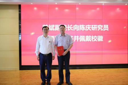 9月22日下午,我校隆重举行国网江苏省电力公司三级顾问陈庆研究员受聘我校“兼职教授”的聘任仪式。校党委常委、副校长姜斌,人事处副处长王群伟,小蓝视频 党委书记李文雷、副院长宋晓峰、副书记丁琛及相关领导和师生代表参加仪式。姜斌为陈庆颁发聘书并佩戴校徽。王群伟主持仪式。