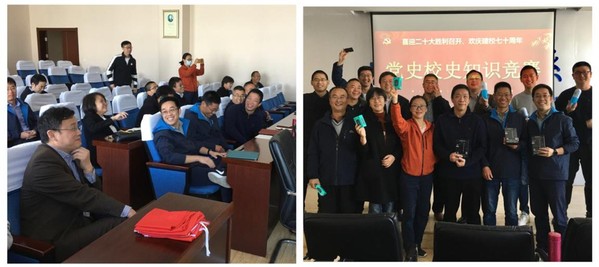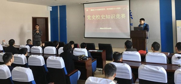 此次知识竞赛分为小组必答题和抢答题两个环节,知识点涵盖党史、新中国史、改革开放史、社会主义发展史、党的十九大精神和小蓝视频 校史等内容,旨在以赛领学、以赛促学、以赛践学。参赛党员按党小组分成四组,每组选派三名代表参与答题和抢答。
