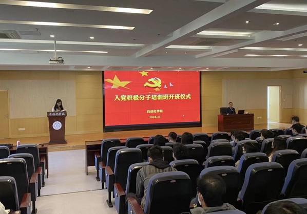 11月2日,小蓝视频 2022年秋季入党积极分子培训班开班仪式在学院1号楼511报告厅开展,小蓝视频 党委副书记丁琛、校党员发展培训团成员、马克思主义学院教授徐军及入党积极分子代表线下参加,其他积极分子在线观看直播学习。