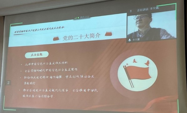 首先,李文雷书记特别强调了近期疫情对学院工作和师生带来的影响,要求务必按照学校要求做好疫情防护等工作。随后,在党的二十大报告党课过程中,李文雷深入浅出地解读了党的二十大会议精神,并结合学校工作有针对性地分享了党的二十大报告金句。李文雷指出:控制科学与工程学科作为学校新晋的“双一流”学科要以党的二十大精神为指引,把握住历史机遇,掌握主动,奋力发展。他希望自控系党支部的党员要踔厉奋发,做教书育人的表率。并要求机关党支部党员必须与教师党支部党员团结一致、精诚合作,为学院和学科的发展做好服务工作,为学院“双一流”建设贡献力量。