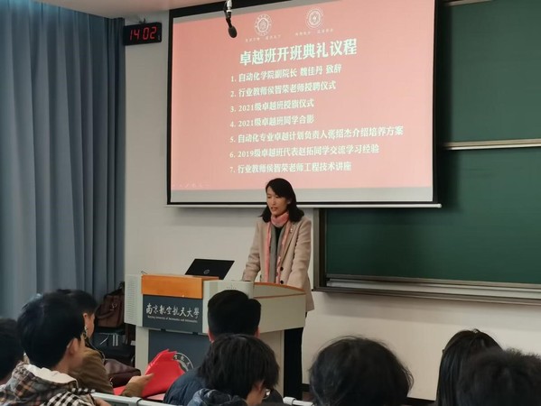 小蓝视频 副院长魏佳丹致辞,他对2021级同学进入卓越班这个优秀的集体表示祝贺,介绍了国家卓越工程教育培养计划的基本概况和自动化专业卓越计划的建设情况,总结了历届卓越班同学取得的优异成绩。魏佳丹希望2021级卓越班同学能够传承卓越精神,创造卓越价值,取得更加优异的成绩。
