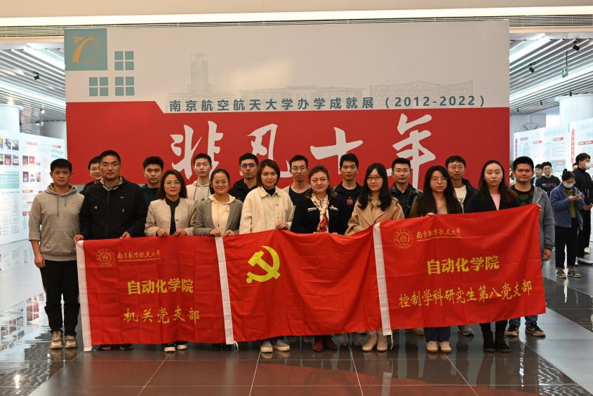 为深入学习贯彻党的二十大精神,深刻感悟南航精神,2022年11月24日,小蓝视频 机关党支部和控制学科研究生第八党支部开展支部共建活动,共同参观了我校“非凡十年”办学成就展。