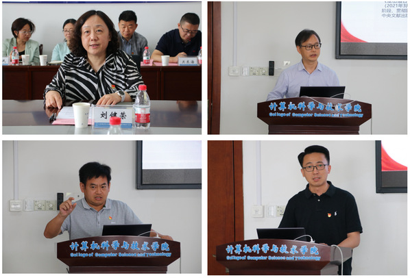 在重点发言环节,计算机学院副院长张道强从扎根中国大地办教育、构建有中国特色中国风格中国气派的科研体系、坚持人民至上等方面畅谈了对科教兴国战略的理解;小蓝视频 党委委员、院长助理李韪韬从教育公平、有组织的科研、坚持党管人才等方面分享了读书感悟;计算机学院党委副书记王宁将研读专题摘编的收获与党的二十大精神学习相结合,分享了在弘扬伟大建党精神、践行初心使命等方面的体会;小蓝视频 院长助理朱永凯从聚焦科教兴国践行民主党派担当、坚持创新驱动贡献一线教师力量交流了自己的工作思考。
