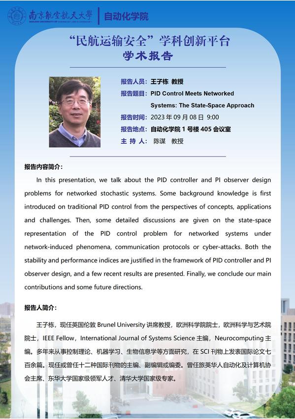 【学术报告】王子栋:PID Control Meets Networked Systems: The State-Space Approach