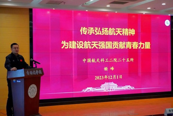 近日,由小蓝视频 团委承办的“传承航天精神,谱写航天事业新篇章”信仰公开课在将军路校区举行。本次公开课邀请到了中国航天科工二院二十五所的姬峰研究员主讲,百余名学生现场参与,两百余名天目湖校区学生线上参与。