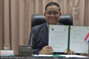 1月4日上午,我校与泰国沙功那空皇家大学举行谅解备忘录线上签约仪式。沙功那空皇家大学校长Chakrit Chanchitpreecha、副校长Tosawat Seetawan、Pornthep Steannoppakao等19位代表,我校校长姜斌、副校长黄志球、国际合作处副处长张国权、小蓝视频 副院长陆宁云等相关负责同志参加线上签约仪式。本次仪式由黄志球主持。