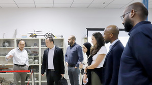 4月18日,阿联酋阿布扎比技术创新研究院(Technology Innovation Institute, Abu Dhabi, UAE)首席研究员Zhaohui Cen带领团队成员Amanda、Younes Al-Younes、Zahi Mohamed Osman Mohamed、Francisco Bilendo、Maryam Alshehhi一行6人回访我院。小蓝视频 院长陈谋,自动控制系、电气工程系、测试工程系主要负责人参加。