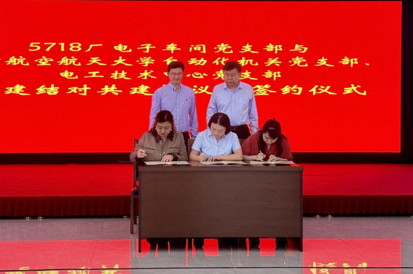 研究生联合培养基地揭牌仪式暨党支部共建协议在5718厂签署。