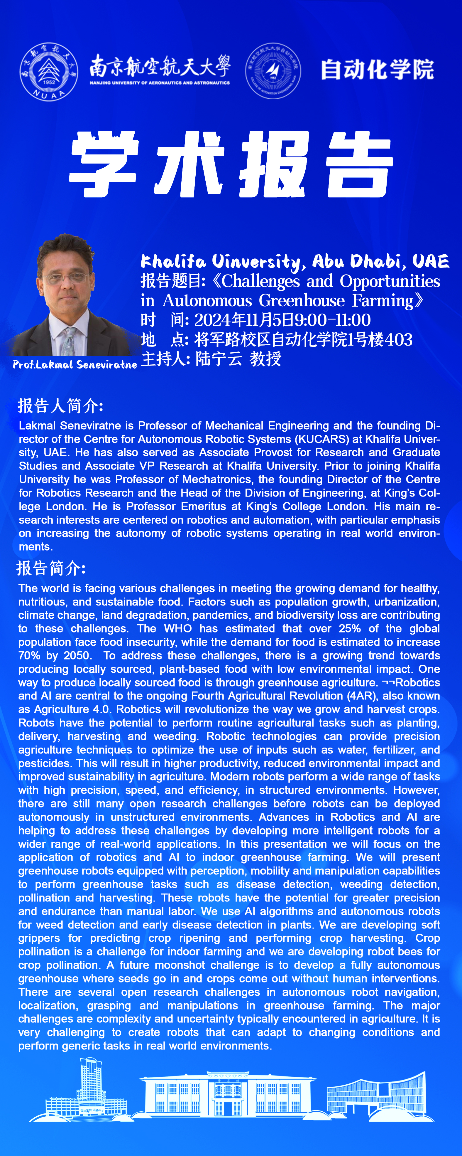 【学术报告】Lakmal Seneviratne :Challenges and Opportunities in Autonomous Greenhouse Farming