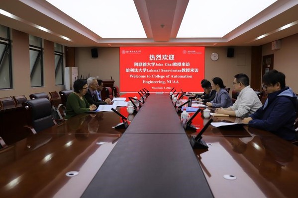 陆宁云代表学院对Lakmal Seneviratne和John Chai Chee Kiong两位教授的到来表示欢迎并介绍了我院在学科建设、科学研究、国际合作等方面的发展情况和工作成效。她指出,今年作为“一带一路”倡议的第十一周年,将继续本着共商、共建、共享的原则,拓展合作领域。哈利法大学和阿联酋大学都非常注重科学研究,南航小蓝视频 希望能以此次会谈为契机,围绕更高质量的人才培养、更深层次的科研合作、更高水平的学术交流,不断深化合作关系,携手实现共赢发展。