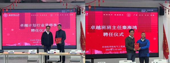 为完善培育机制,体现“卓越计划”的校企合作特色,小蓝视频 副院长魏佳丹向阳光电源/储能事业部变流研发中心总监李勇颁发“卓越计划”行业导师聘书,电气工程及其自动化专业负责人王晓琳向电气工程“卓越班”0323208班班主任秦海鸿颁发班主任聘书。