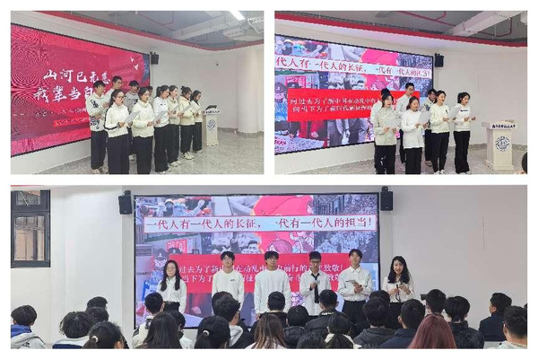年级学生代表以诗明志,以歌咏怀,齐声朗诵由马佳妮同原创的诗歌《烟火摇曳中,华夏锦绣时》,深情合唱歌曲《我和我的祖国》,以饱满的热情、激扬的语调、嘹亮的歌声,忆往昔峥嵘岁月,抒今朝爱国情怀。