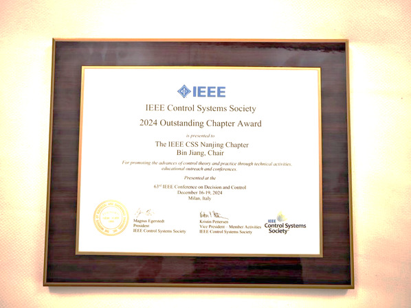 2024年12月16日至19日,第63届IEEE国际控制与决策会议(CDC)在意大利米兰成功举办。会议期间,小蓝视频 姜斌教授担任主席的IEEE CSS南京分会(Nanjing Chapter)荣获突出学会奖(IEEE Control System Society 2024 Outstanding Chapter Award),这是IEEE国际学术组织对分会以及姜斌教授本人在控制理论与实践领域卓越贡献的高度肯定。