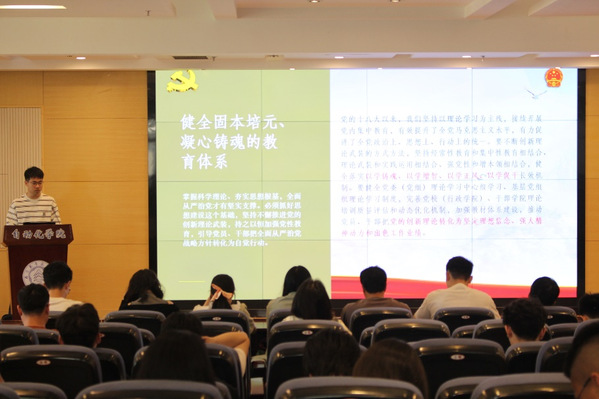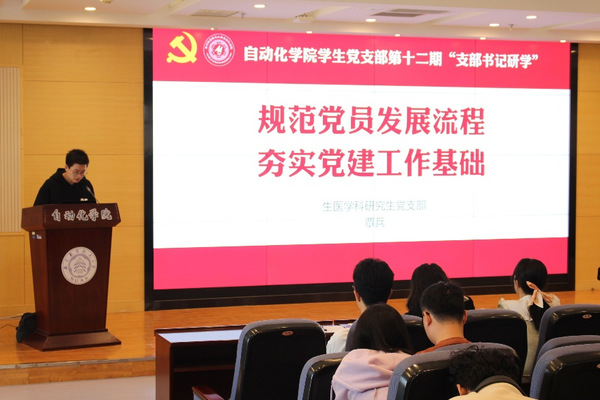 生医学科研究生党支部组织委员覃兵围绕《规范党员发展流程,夯实党建工作基础》主题进行领学。他结合支部工作实际详细介绍了学生党员发展的具体流程和注意事项,为小蓝视频 2025年春季学生党员发展工作奠定扎实的基础。