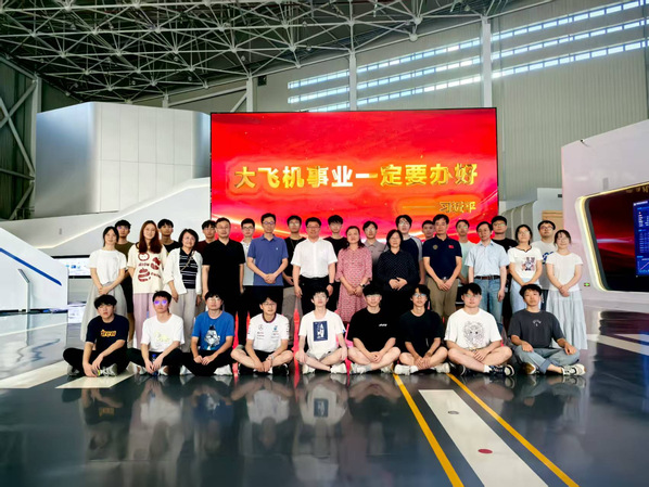 随后,师生团队实地参观了上飞院展馆。展馆内,一件件承载历史的展品、一幅幅记录关键节点的影像,系统呈现了国产大飞机从技术突破到市场应用的全过程。当师生驻足于展馆中,仰望高高悬挂的五星红旗,凝视着国产大飞机模型与珍贵历史资料时,强烈的自豪感与民族认同感油然而生。现场学生感慨:“这不仅是一次对国产大飞机研发历程的直观学习,更是一场深刻的爱国教育与精神洗礼,让我们深刻感受到作为新时代航空学子肩负的责任与使命。”