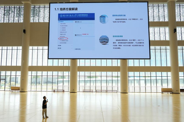 为扎实做好本科生入学教育工作,积极配合学校书院育人新体系改革,帮助新生尽快适应学校人才培养模式,科学规划个人学业发展,小蓝视频 于9月5日在天目湖校区健翔体育馆组织召开2025级本科新生选课与教务指导宣讲会。小蓝视频 教务员黄一、王琦,2025级辅导员吴静文、李时铭以及2025级全体本科新生参加了此次活动。宣讲会由黄一担任主讲。