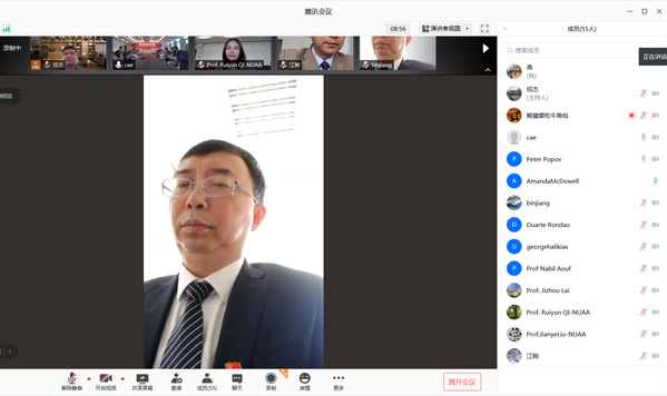 本次会议是一次采用线上和线下相结合的创新方式完成的国际学术交流活动,旨在为两校之间的专家学者就无人系统与控制领域提供一个高端学术交流平台,沟通和交流前沿理论、关键技术和相关的应用成果,进一步加强加深全球战略合作伙伴之间的实质性合作。英国伦敦城市大学Christopher McDowellAssistant Vice President International)、 Peter PopovAssociate Dean International)、Mark HertleinHead of Global Engagement)、Nabil AoufDirector of Systems, Autonomy and Control Centre and the London Space Institute)等;南京航空航天大学副校长姜斌,国际合作处处长张卓,国际合作处副处长沈敏,国际合作处项目科科长田立丰,自动化学院院长江驹,自动化学院副院长宋晓峰、自动化学院副院长陈谋,自动化学院自动控制系副主任张绍杰、自动化学院合作交流办公室主任孔燕及广大师生参加会议。