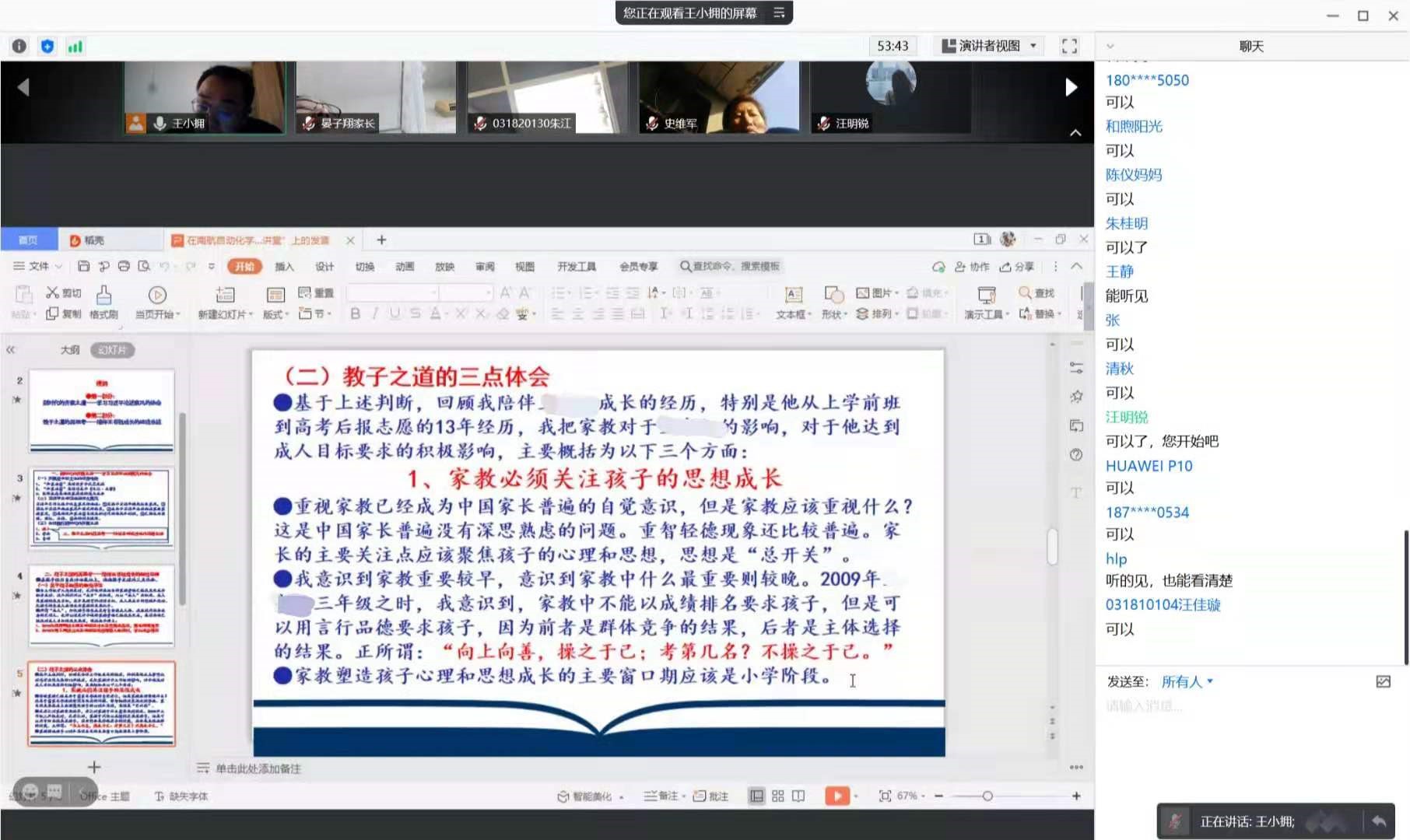 12月20日下午14:30,小蓝视频 召开了线上“家长讲堂”活动,活动邀请了南航2018级小蓝视频 学生家长代表——河南工业大学马克思主义学院副教授王小拥,进行“新时代的齐家之道”主题讲座。王教授结合自己育子成才的切实经验,就新时代的齐家之道、教子之道的再思考两个主要方面为各位家长分享了自己的看法。