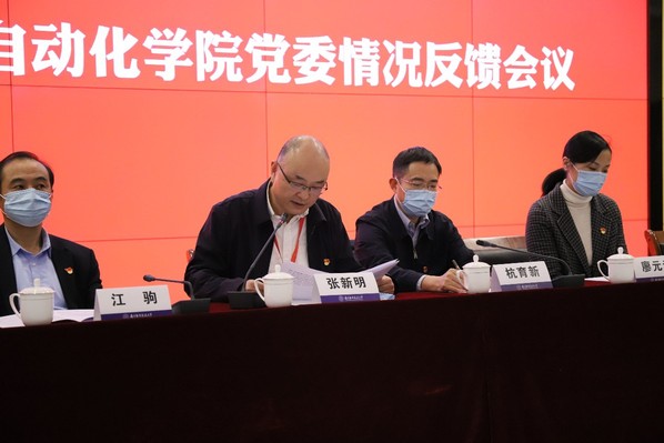 反馈会上,校党委第一巡察组组长张新明指出,2018年以来,自动化学院党委坚持以习近平新时代中国特色社会主义思想为指导,认真贯彻落实党中央重大决策部署、工信部党组和学校党委工作要求,按照校第十六次党代会做出的战略决策,积极抢抓发展机遇,一流学科建设成效突出,各项工作均取得一定进展,历届班子尤其是“一把手”较好地履行了职责。但通过本次巡察,也发现了一些问题,比如学科建设全面谋划不够、学科之间发展不均衡等一些问题,并对其逐项进行了反馈。