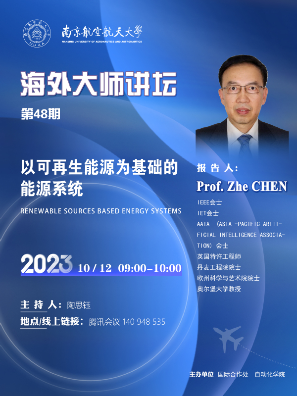 【海外大师讲坛·第48期】Prof. Zhe CHEN:以可再生能源为基础的能源系统